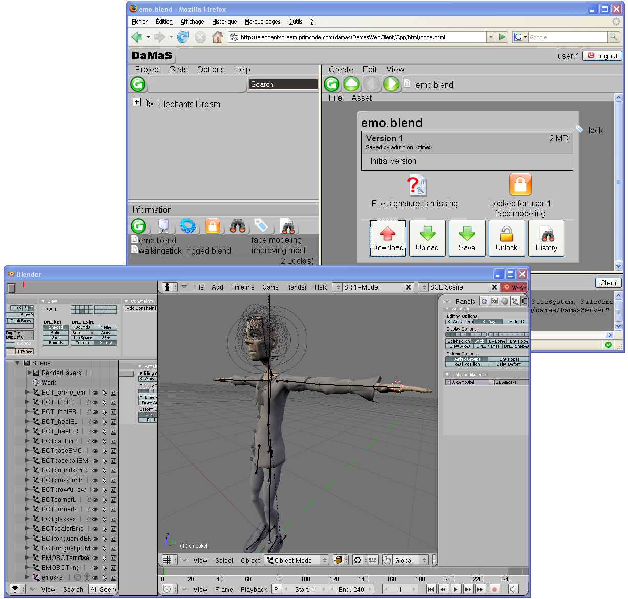 The API allow developers to integrate damas-core into an existing digital creation content software such as Autodesk Maya or to build a new standalone interface from scratch.