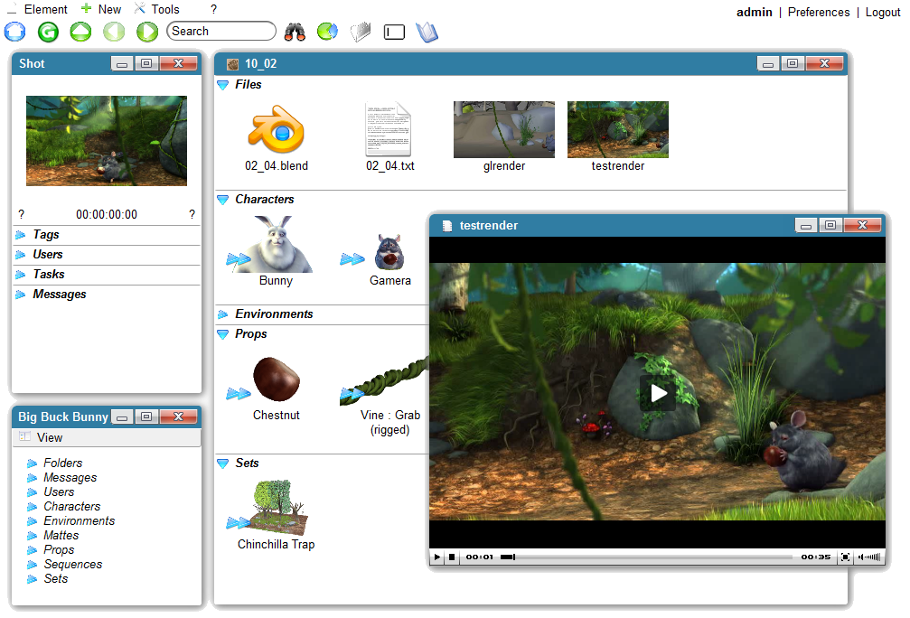 A video player allows users to publish and playback video files, as YouTube does. These movies could be animatics, animated shots, or an entire final movie with sound.